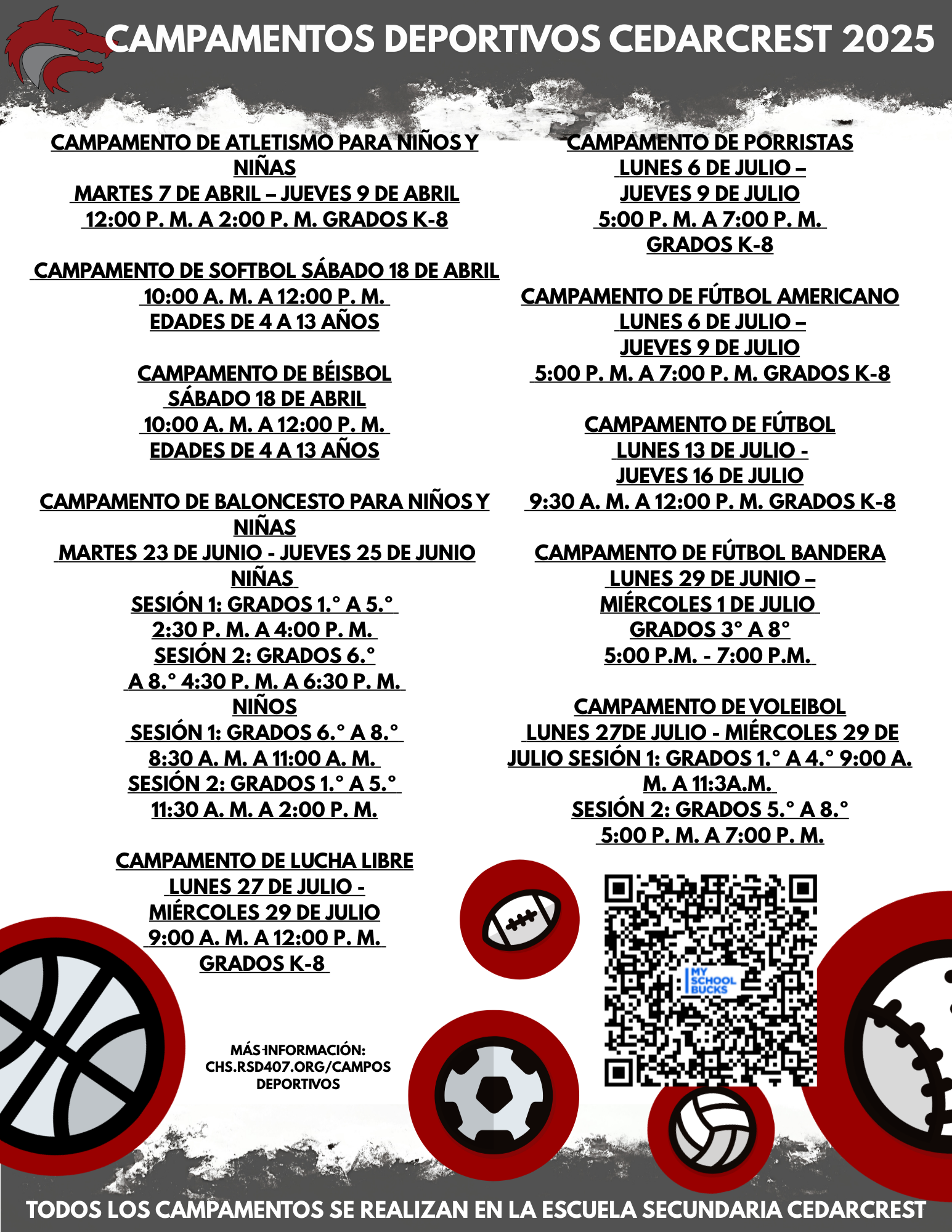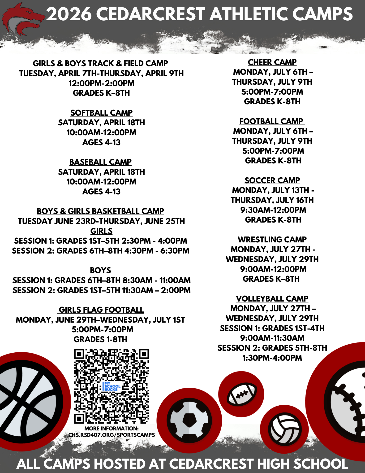 ALL CAMPS ARE HOSTED AT CEDARCREST HIGH SCHOOL
